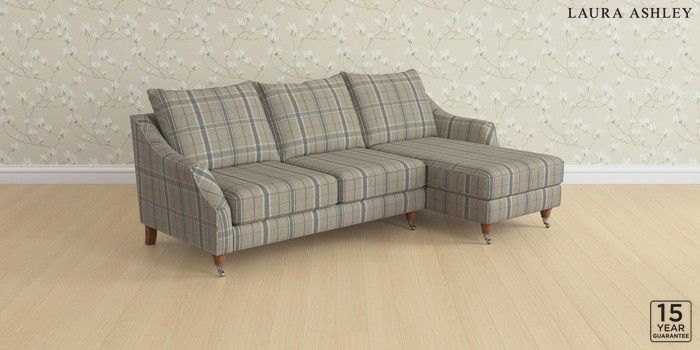 7.3.1 Buy Beverley by Laura Ashley Medium Sofa Chaise - Right Hand Longstowe Check French Grey Low Chrome Castor - Teak from the Next UK online shop Click here to use our accessible website