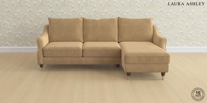 6.12.1 Buy Beverley by Laura Ashley Medium Sofa Chaise - Right Hand Lundar Chenille Caramel Natural Low Brass Castor - Chestnut from the Next UK online shop Click here to use our accessible website