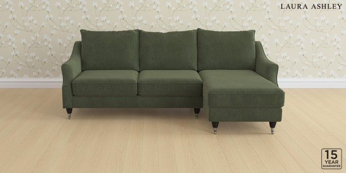 6.12.1 Buy Beverley by Laura Ashley Medium Sofa Chaise - Right Hand Lundar Chenille Ivy Green Low Chrome Castor - Black from the Next UK online shop Click here to use our accessible website