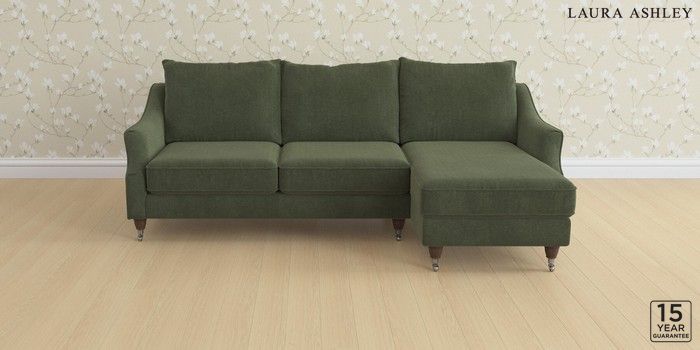 6.12.1 Buy Beverley by Laura Ashley Medium Sofa Chaise - Right Hand Lundar Chenille Ivy Green Low Chrome Castor - Chestnut from the Next UK online shop Click here to use our accessible website