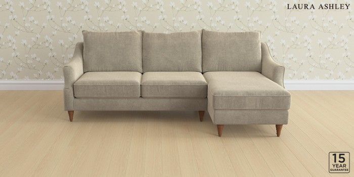 6.12.1 Buy Beverley by Laura Ashley Medium Sofa Chaise - Right Hand Lundar Chenille Truffle Natural Low Turned - Teak from the Next UK online shop Click here to use our accessible website