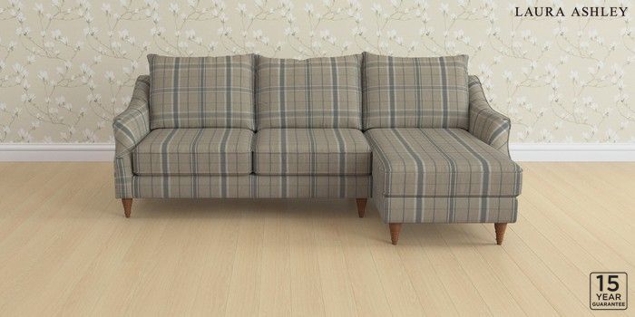 6.12.1 Buy Beverley by Laura Ashley Medium Sofa Chaise - Right Hand Longstowe Check French Grey Low Turned - Teak from the Next UK online shop Click here to use our accessible website
