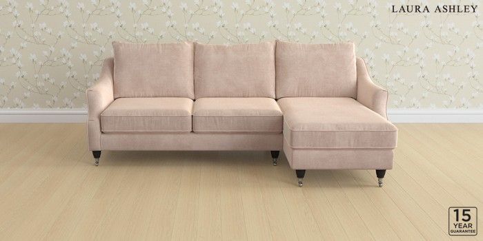 6.12.1 Buy Beverley by Laura Ashley Medium Sofa Chaise - Right Hand Orla Chalk Pink Low Chrome Castor - Black from the Next UK online shop Click here to use our accessible website