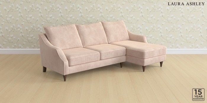7.2.10 Buy Beverley by Laura Ashley Medium Sofa Chaise - Right Hand Orla Chalk Pink Low Turned - Chestnut from the Next UK online shop Click here to use our accessible website