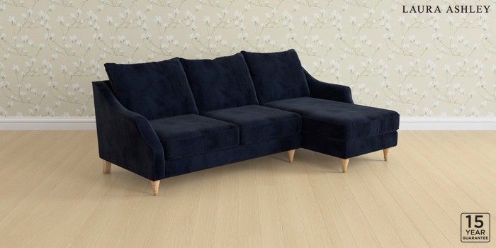 6.12.1 Buy Beverley by Laura Ashley Medium Sofa Chaise - Right Hand Orla Midnight Navy Low Turned - Light Oak from the Next UK online shop Click here to use our accessible website