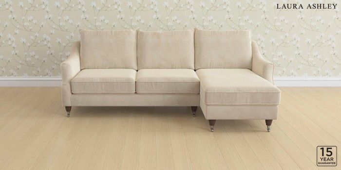 6.12.13 Buy Beverley by Laura Ashley Medium Sofa Chaise - Right Hand Orla Oyster Natural Low Chrome Castor - Chestnut from the Next UK online shop Click here to use our accessible website