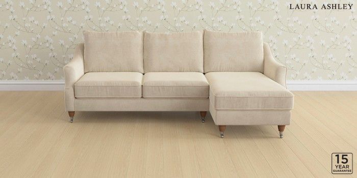 6.12.1 Buy Beverley by Laura Ashley Medium Sofa Chaise - Right Hand Orla Oyster Natural Low Chrome Castor - Teak from the Next UK online shop Click here to use our accessible website