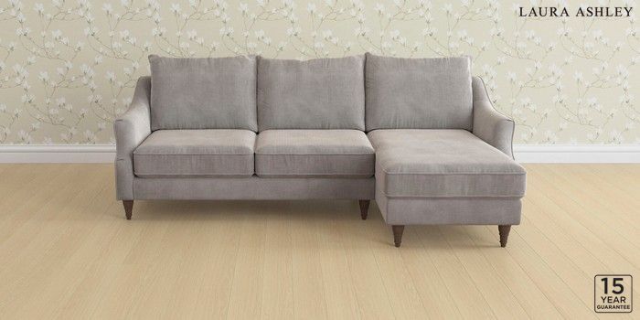 6.12.1 Buy Beverley by Laura Ashley Medium Sofa Chaise - Right Hand Orla Pale Steel Grey Low Turned - Chestnut from the Next UK online shop Click here to use our accessible website