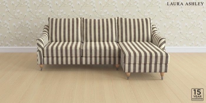 6.12.1 Buy Beverley by Laura Ashley Medium Sofa Chaise - Right Hand Orla Stripe Dark Truffle Natural Low Chrome Castor - Light Oak from the Next UK online shop Click here to use our accessible website