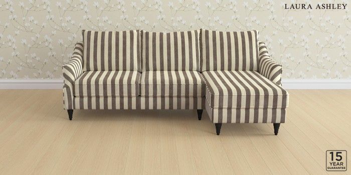 6.12.1 Buy Beverley by Laura Ashley Medium Sofa Chaise - Right Hand Orla Stripe Dark Truffle Natural Low Turned - Black from the Next UK online shop Click here to use our accessible website