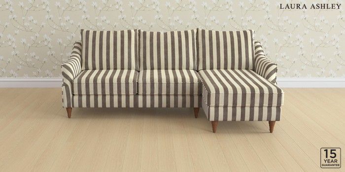 6.12.1 Buy Beverley by Laura Ashley Medium Sofa Chaise - Right Hand Orla Stripe Dark Truffle Natural Low Turned - Teak from the Next UK online shop Click here to use our accessible website