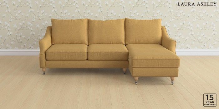 6.12.1 Buy Beverley by Laura Ashley Medium Sofa Chaise - Right Hand Peyton Ochre Yellow Low Chrome Castor - Light Oak from the Next UK online shop Click here to use our accessible website