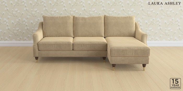 6.12.1 Buy Beverley by Laura Ashley Medium Sofa Chaise - Right Hand Peyton Sable Natural Low Brass Castor - Chestnut from the Next UK online shop Click here to use our accessible website