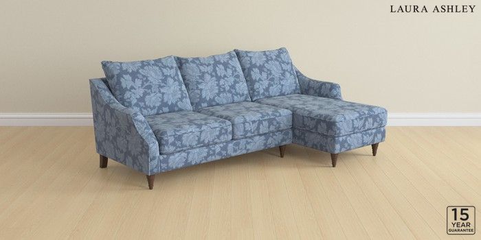 7.2.10 Buy Beverley by Laura Ashley Medium Sofa Chaise - Right Hand Tamara Dusky Seaspray Blue Low Turned - Chestnut from the Next UK online shop Click here to use our accessible website