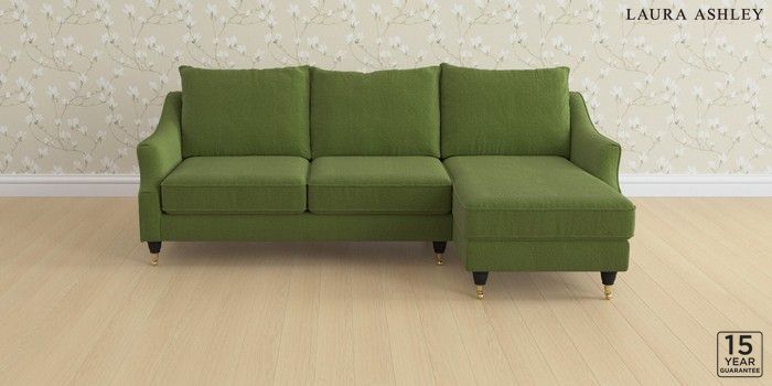 6.12.1 Buy Beverley by Laura Ashley Medium Sofa Chaise - Right Hand Tichwell Olive Green Low Brass Castor - Black from the Next UK online shop Click here to use our accessible website