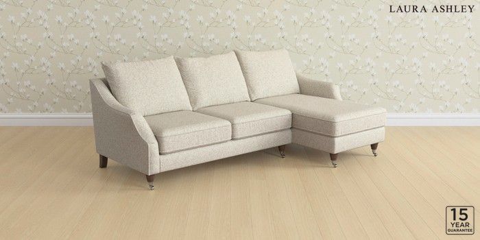 7.3.1 Buy Beverley by Laura Ashley Medium Sofa Chaise - Right Hand Tichwell Stone Natural Low Chrome Castor - Chestnut from the Next UK online shop Click here to use our accessible website