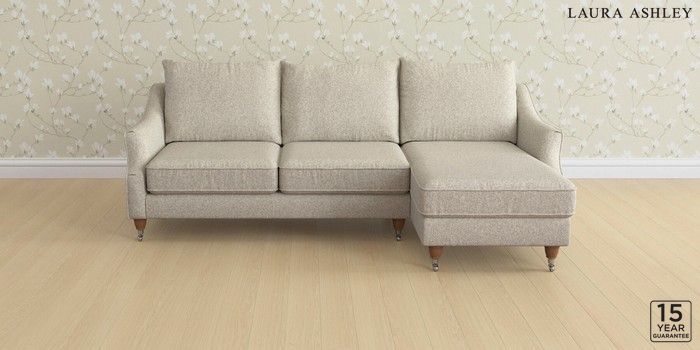 6.12.1 Buy Beverley by Laura Ashley Medium Sofa Chaise - Right Hand Tichwell Stone Natural Low Chrome Castor - Teak from the Next UK online shop Click here to use our accessible website