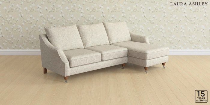 7.3.1 Buy Beverley by Laura Ashley Medium Sofa Chaise - Right Hand Tichwell Stone Natural Low Chrome Castor - Teak from the Next UK online shop Click here to use our accessible website