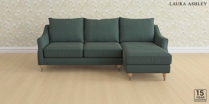6.12.1 Buy Beverley by Laura Ashley Medium Sofa Chaise - Right Hand Wooton Forest Green Low Chrome Castor - Light Oak from the Next UK online shop Click here to use our accessible website