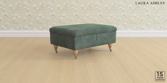 6.12.1 Buy Beverley by Laura Ashley Storage Footstool Nantmor Fern Green Low Chrome Castor - Light Oak from the Next UK online shop Click here to use our accessible website