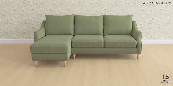 6.12.1 Buy Beverley by Laura Ashley Medium Sofa Chaise - Left Hand Peyton Hedgerow Green Low Turned - Light Oak from the Next UK online shop Click here to use our accessible website
