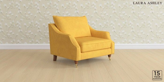 7.3.1 Buy Beverley by Laura Ashley Snuggle Bainton Ochre Yellow Low Brass Castor - Teak from the Next UK online shop Click here to use our accessible website