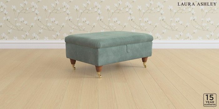 6.12.1 Buy Beverley by Laura Ashley Storage Footstool Ailsworth Fern Green Low Brass Castor - Teak from the Next UK online shop Click here to use our accessible website