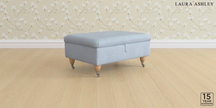 6.12.1 Buy Beverley by Laura Ashley Storage Footstool Ailsworth Newport Blue Low Chrome Castor - Light Oak from the Next UK online shop Click here to use our accessible website