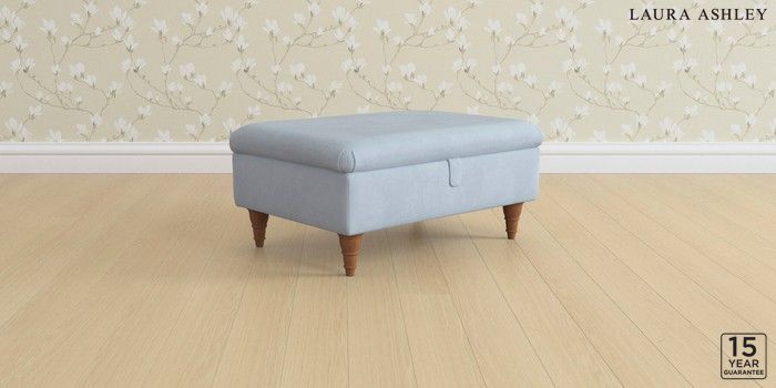 6.12.1 Buy Beverley by Laura Ashley Storage Footstool Ailsworth Newport Blue Low Turned - Teak from the Next UK online shop Click here to use our accessible website