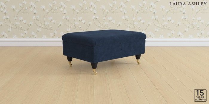 6.12.1 Buy Beverley by Laura Ashley Storage Footstool Alwyn Velvet Midnight Navy Low Brass Castor - Black from the Next UK online shop Click here to use our accessible website