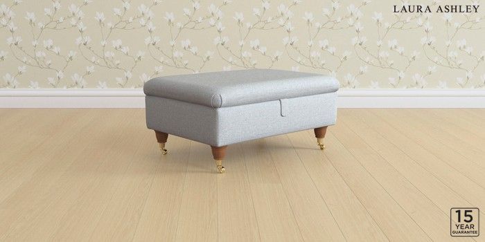 6.12.13 Buy Beverley by Laura Ashley Storage Footstool Anneliese Seaspray Blue Low Brass Castor - Teak from the Next UK online shop Click here to use our accessible website