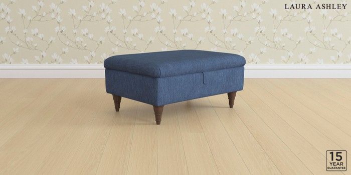 6.12.1 Buy Beverley by Laura Ashley Storage Footstool Bainton Midnight Navy Low Turned - Chestnut from the Next UK online shop Click here to use our accessible website