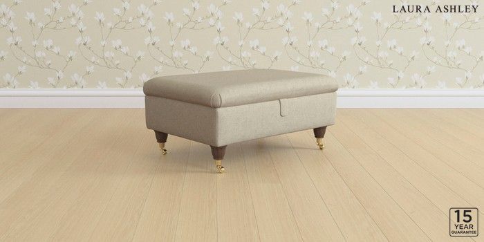 6.12.1 Buy Beverley by Laura Ashley Storage Footstool Bainton Natural Low Brass Castor - Chestnut from the Next UK online shop Click here to use our accessible website