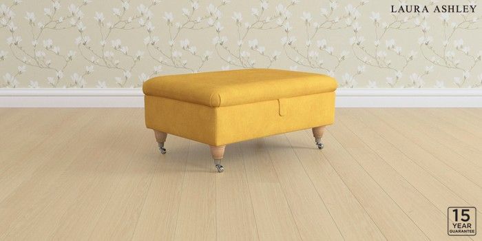 6.12.1 Buy Beverley by Laura Ashley Storage Footstool Bainton Ochre Yellow Low Chrome Castor - Light Oak from the Next UK online shop Click here to use our accessible website
