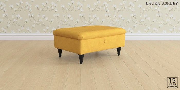 6.12.1 Buy Beverley by Laura Ashley Storage Footstool Bainton Ochre Yellow Low Turned - Black from the Next UK online shop Click here to use our accessible website