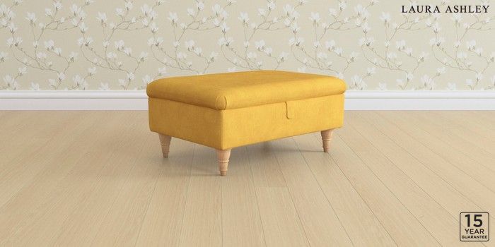 6.12.1 Buy Beverley by Laura Ashley Storage Footstool Bainton Ochre Yellow Low Turned - Light Oak from the Next UK online shop Click here to use our accessible website