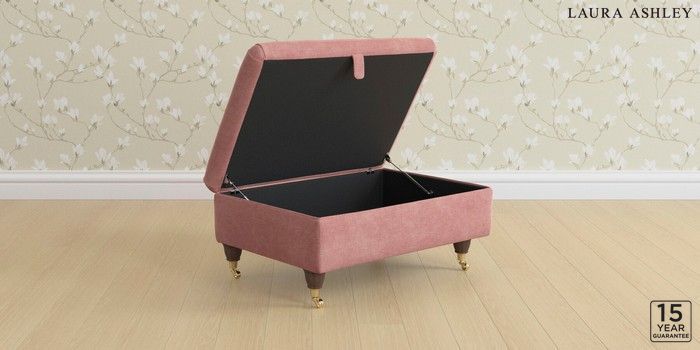 6.12.13 Buy Beverley by Laura Ashley Storage Footstool Bainton Old Rose Pink Low Brass Castor - Chestnut from the Next UK online shop Click here to use our accessible website