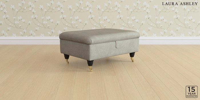 6.12.1 Buy Beverley by Laura Ashley Storage Footstool Bainton Pale Steel Grey Low Brass Castor - Black from the Next UK online shop Click here to use our accessible website