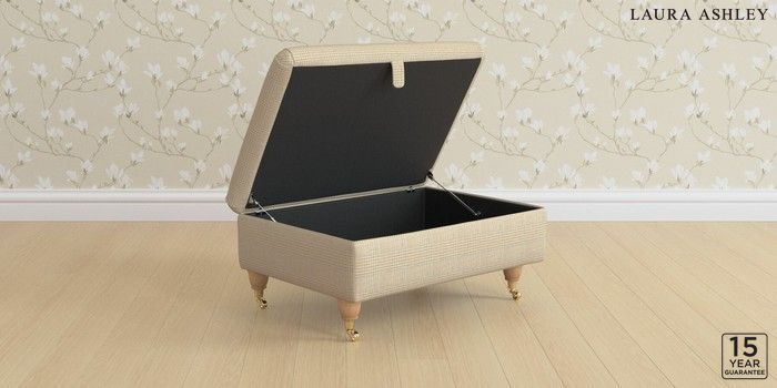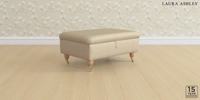 6.12.1 Buy Beverley by Laura Ashley Storage Footstool Birchgrove Check Oatmeal Natural Low Brass Castor - Light Oak from the Next UK online shop Click here to use our accessible website