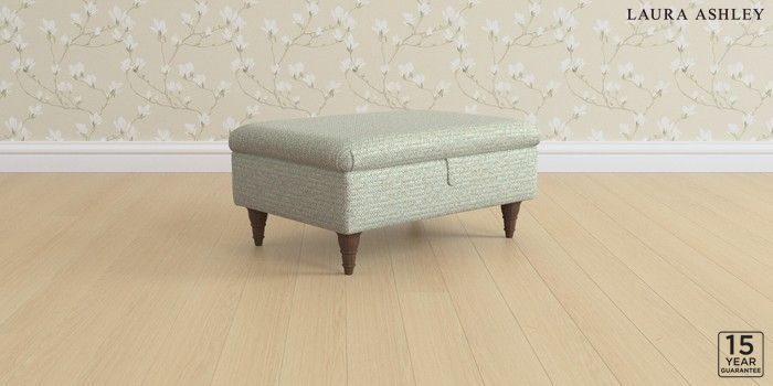 6.12.1 Buy Beverley by Laura Ashley Storage Footstool Borwick Newport Blue Low Turned - Chestnut from the Next UK online shop Click here to use our accessible website