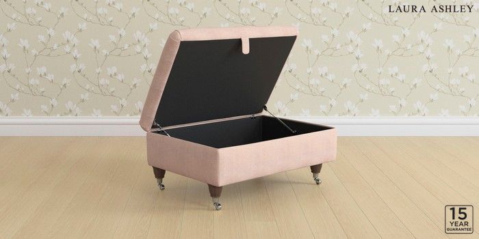 6.12.1 Buy Beverley by Laura Ashley Storage Footstool Edwin Chenille Blush Pink Low Chrome Castor - Chestnut from the Next UK online shop Click here to use our accessible website