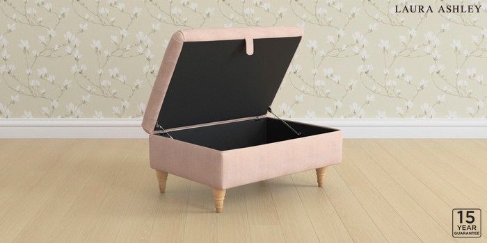 6.12.1 Buy Beverley by Laura Ashley Storage Footstool Edwin Chenille Blush Pink Low Turned - Light Oak from the Next UK online shop Click here to use our accessible website