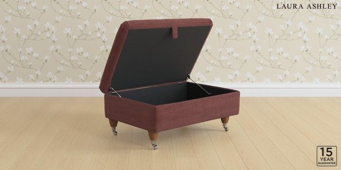 6.12.1 Buy Beverley by Laura Ashley Storage Footstool Edwin Chenille Burgundy Red Low Chrome Castor - Teak from the Next UK online shop Click here to use our accessible website