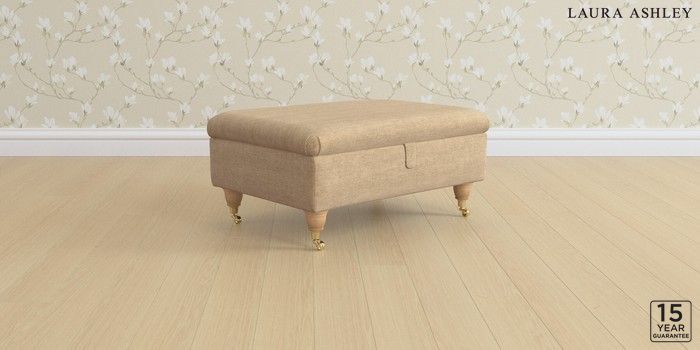 6.12.1 Buy Beverley by Laura Ashley Storage Footstool Edwin Chenille Gold Natural Low Brass Castor - Light Oak from the Next UK online shop Click here to use our accessible website
