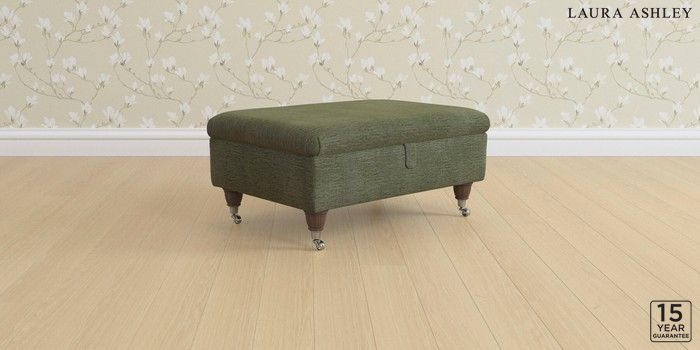 6.12.1 Buy Beverley by Laura Ashley Storage Footstool Edwin Chenille Hedgerow Green Low Chrome Castor - Chestnut from the Next UK online shop Click here to use our accessible website