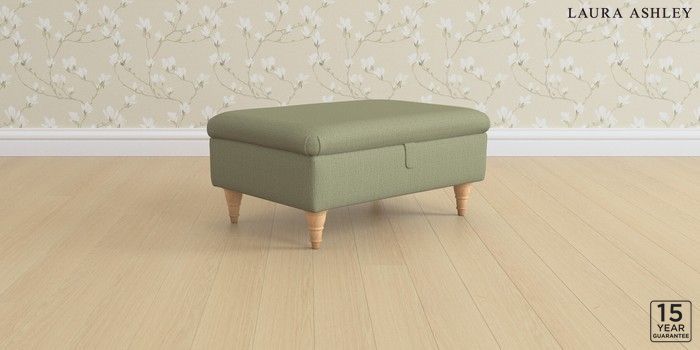 6.12.1 Buy Beverley by Laura Ashley Storage Footstool Edwin Herringbone Hedgerow Green Low Turned - Light Oak from the Next UK online shop Click here to use our accessible website