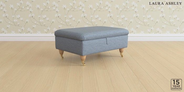 6.12.13 Buy Beverley by Laura Ashley Storage Footstool Harley Seaspray Blue Low Brass Castor - Light Oak from the Next UK online shop Click here to use our accessible website