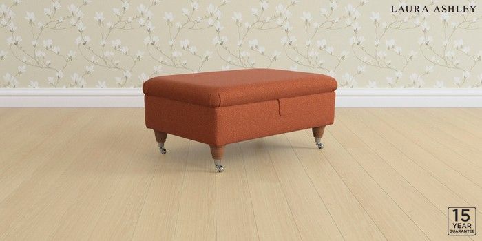 6.12.1 Buy Beverley by Laura Ashley Storage Footstool Harley Terracotta Orange Low Chrome Castor - Teak from the Next UK online shop Click here to use our accessible website