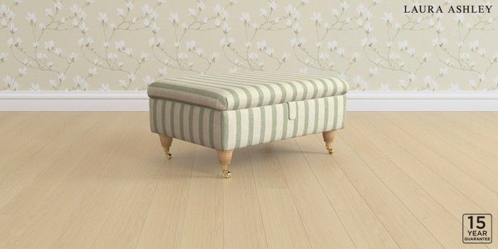 6.12.1 Buy Beverley by Laura Ashley Storage Footstool Kinsham Stripe Hedgerow Green Low Brass Castor - Light Oak from the Next UK online shop Click here to use our accessible website