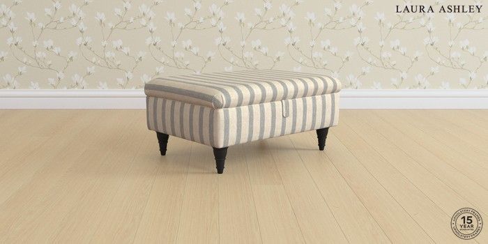 6.12.1 Buy Beverley by Laura Ashley Storage Footstool Kinsham Stripe Seaspray Blue Low Turned - Black from the Next UK online shop Click here to use our accessible website